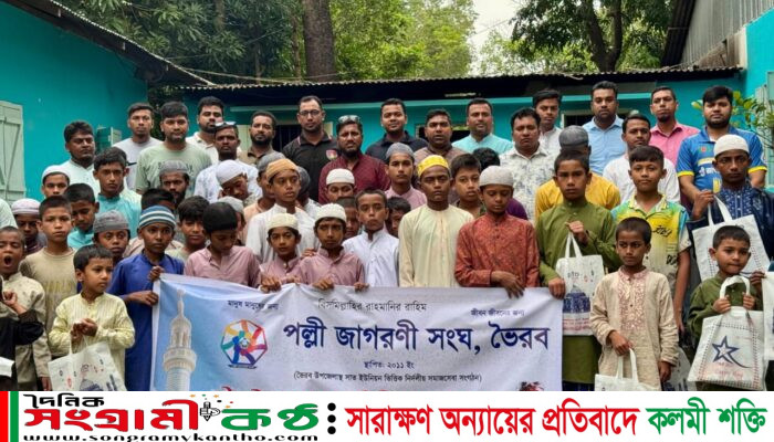 পল্লী জাগরণী সংঘ “ভৈরব ” এর উদ্যোগে ছনছাড়া এতিমখানায় শিশুদের মাঝে ঈদ উপহার সামগ্রী বিতরণ।